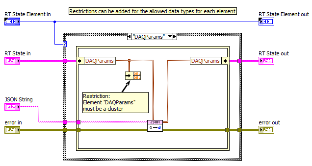- When using your VI, the RT state cluster must be converted to and from a variant.