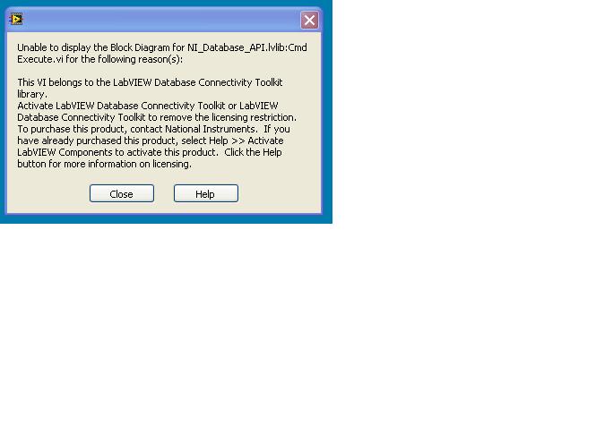 Yes, I got unable to display the block diagram, and ask me to activite the toolkit. I have a licenced labview, and evaluation of Database toolkit.