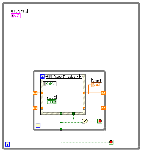Every time STOP is pressed, X and Array 1 are reinitialized which is confusing.  The only way to stop the program is to press STOP 2 and then press STOP.  STOP 2 will stay "pressed" until STOP one is pressed, which is confusing.