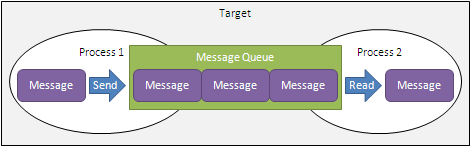 Using this design a process on one target can send a message to any named process on another target in the application. The sender only needs to know the target name (IP address) and the name of the receiver process on the remote target.