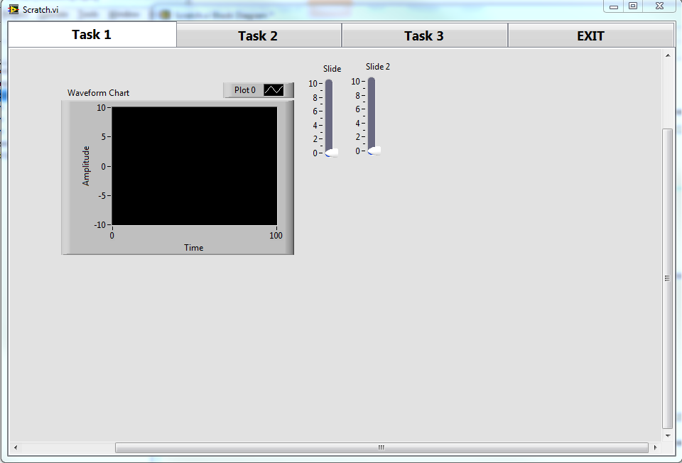 I can never remember how to set the position of the panel/pane, so I figured this was a good place to keep track of that as well. The block diagram above shows the reaction to scaling the window by the vi as well as the inserting of the initial sub vi. The methods of using sub-panels have been covered numerous times on these boards; however, I have not seen an instance where some one used tabs and sub-panels quite like I have here.
